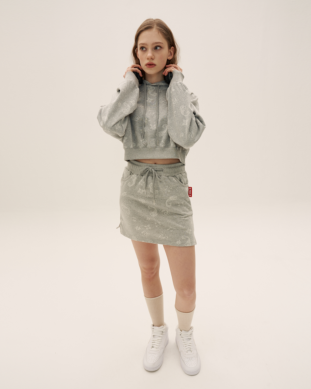 paisley short skirt _ grey