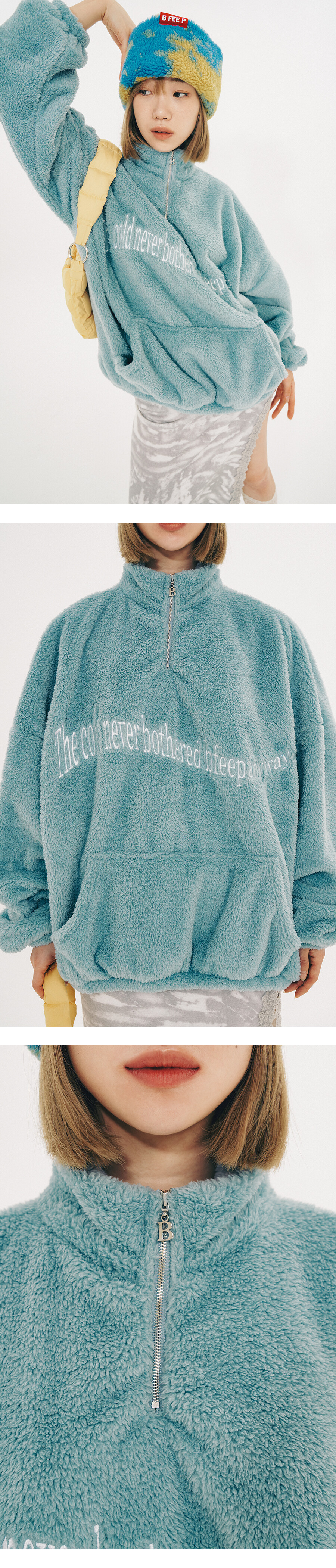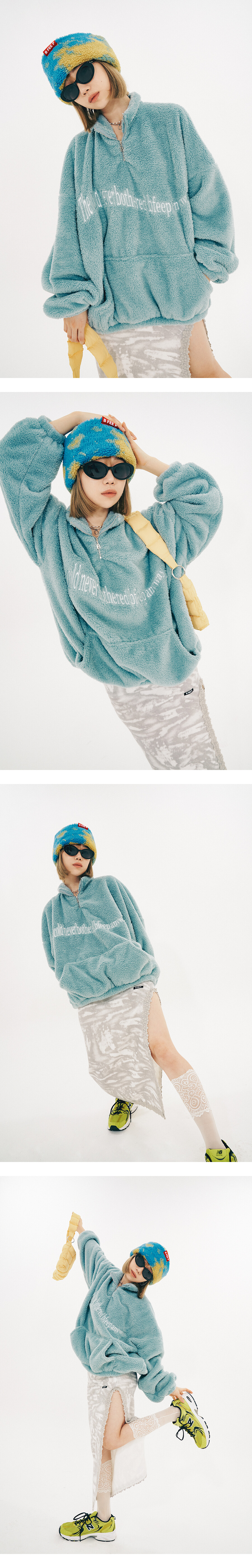 wavy fur half zip up(unisex)_sky