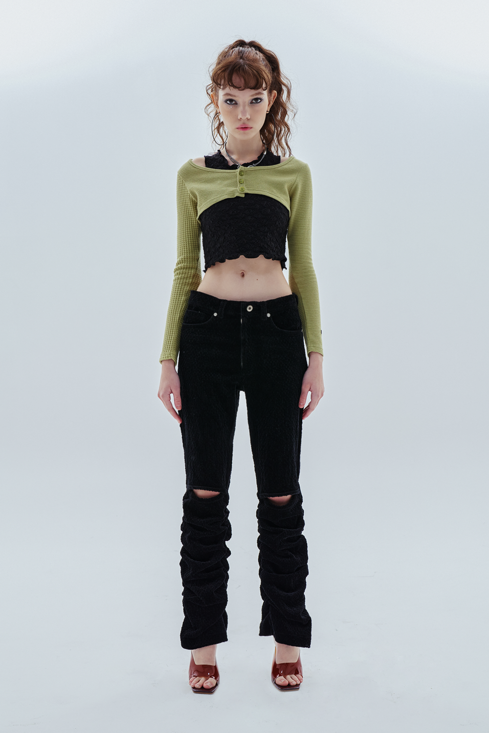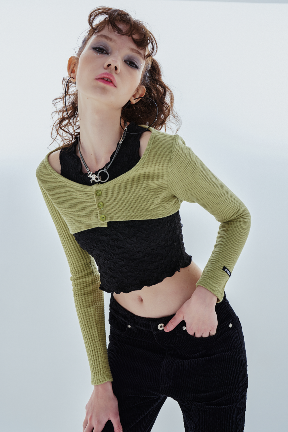 unbalance sleeve cardigan_olive
